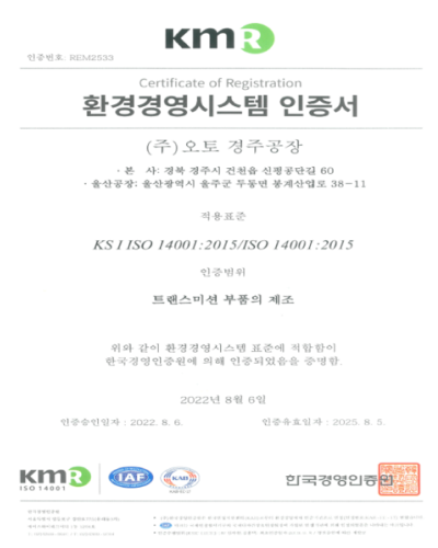 트랜스미션 부품의 대한 인증을 취득하여 유지하고 있습니다.